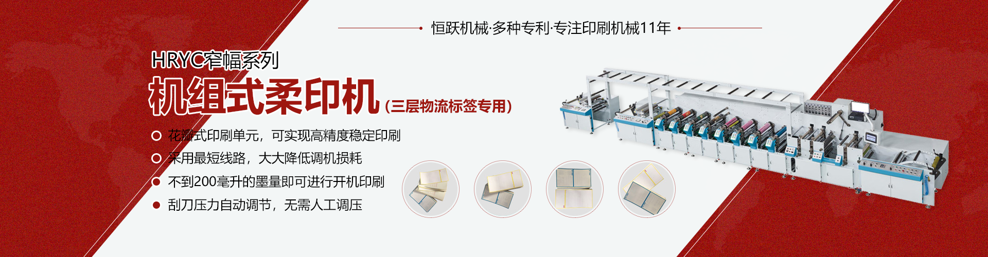 瑞安市恒躍印刷機械有限公司坐落在享有中國機械城之稱的浙江省瑞安市,周邊交通便利,是一家專業制造不干膠商標印刷機械系列的企業。公司擁有國內外精良的制造設備,并凝聚著一批精通印刷、設計、制造、維修的專業技術骨干,同時吸取國內外印刷機械的技術精華,以其完善的企業生產管理體系,經過多年的改造創新后,自行研制了柔版印刷機、標簽印刷機、圓刀模切機、不干膠商標模切機系列、全自動分切機(立式、臥式)、檢標機、復合機等各種商標印刷機及配套設施。產品...